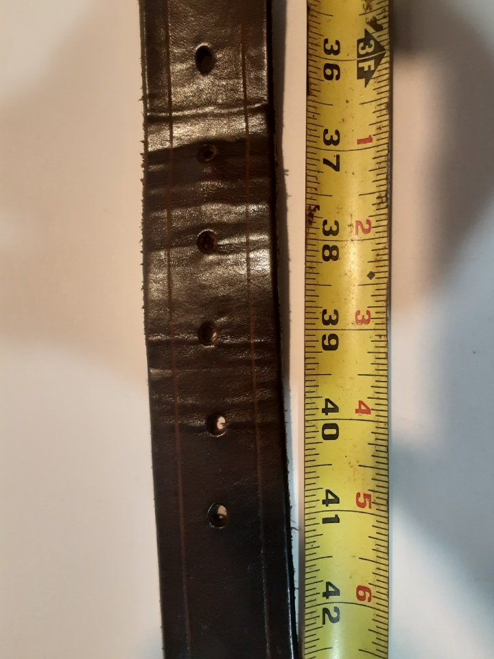 This belt is made from 9-10 ounce veg-tanned leather. 28-44″ in length. See Last picture in pics. Other belt makers will not show this, your at the right place. This belt is Genuine Leather/it will seem stiff when you receive it but in a few wears it starts to soften up as the fibers break down.
