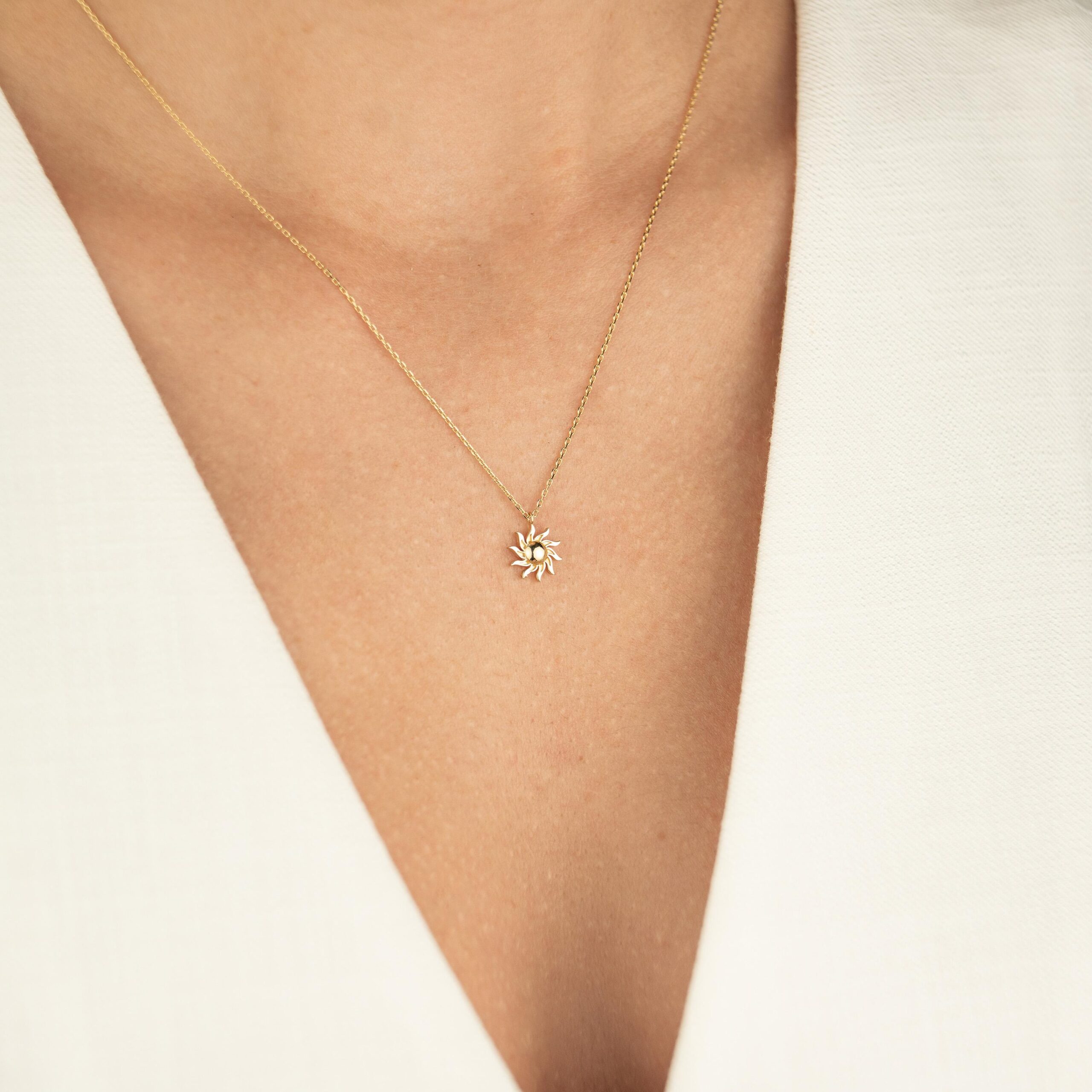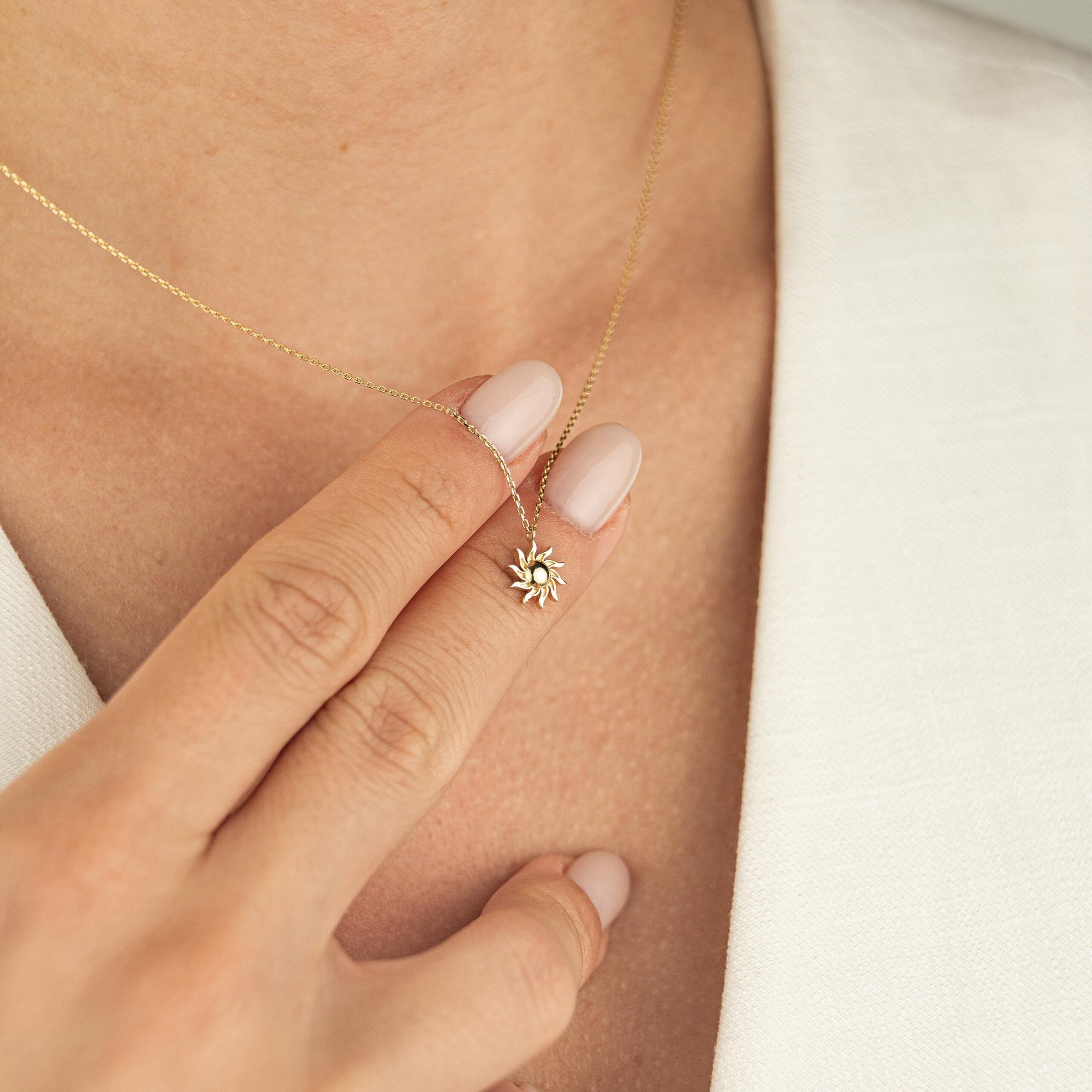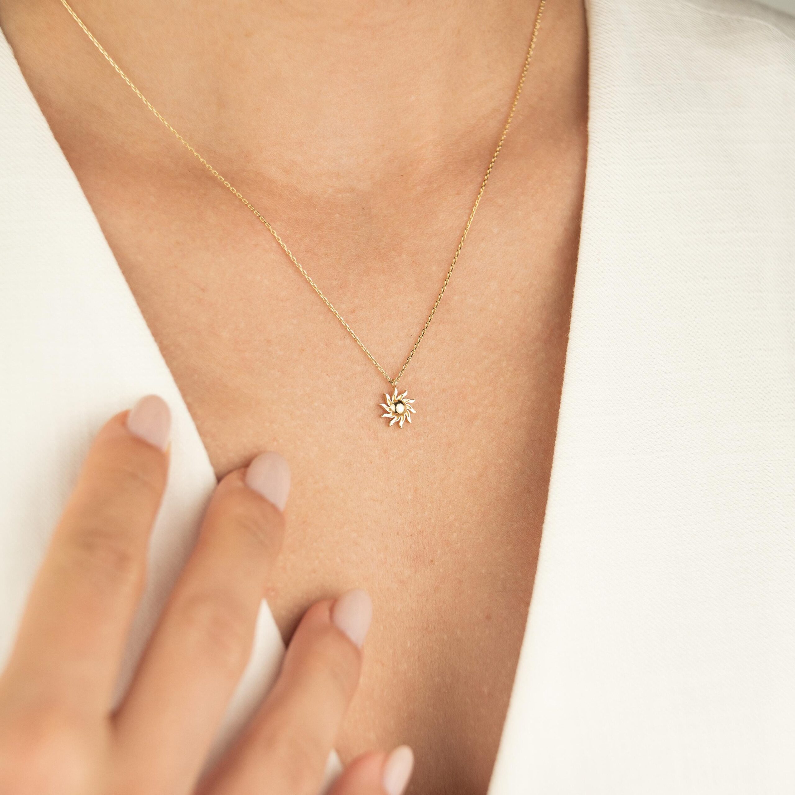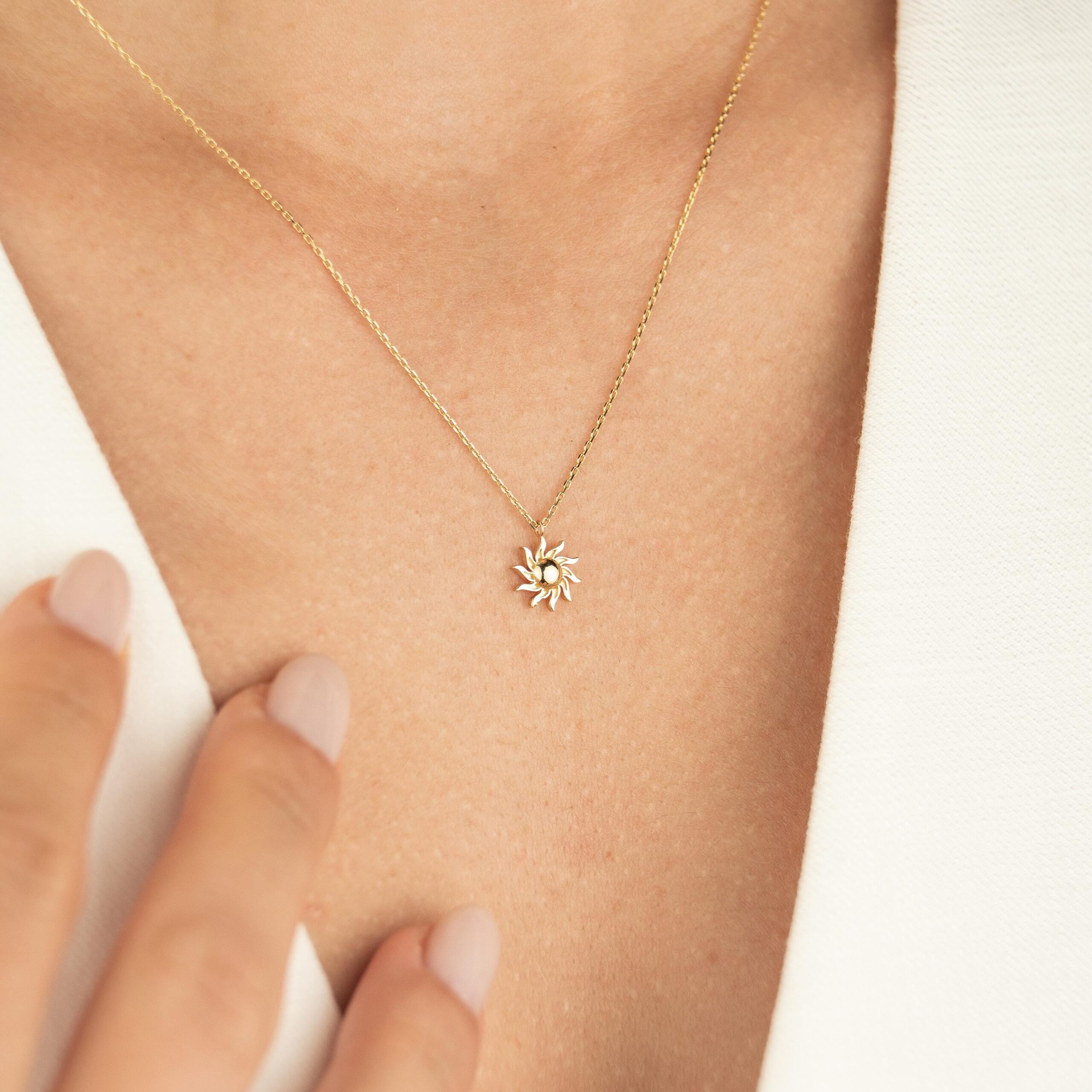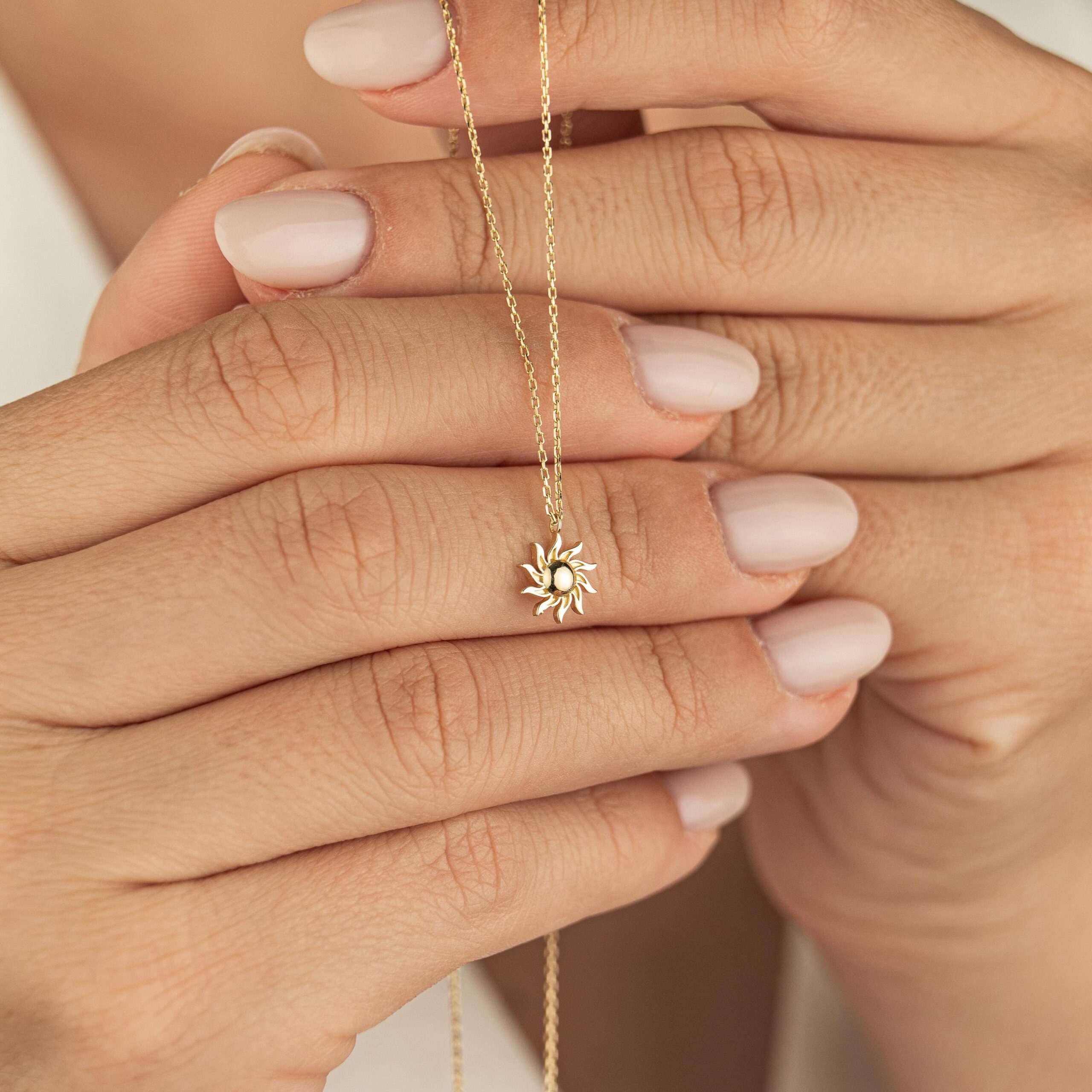 14K Solid Gold Sun Necklace – Dainty Minimalist Pendant, Handmade Sunshine Jewelry