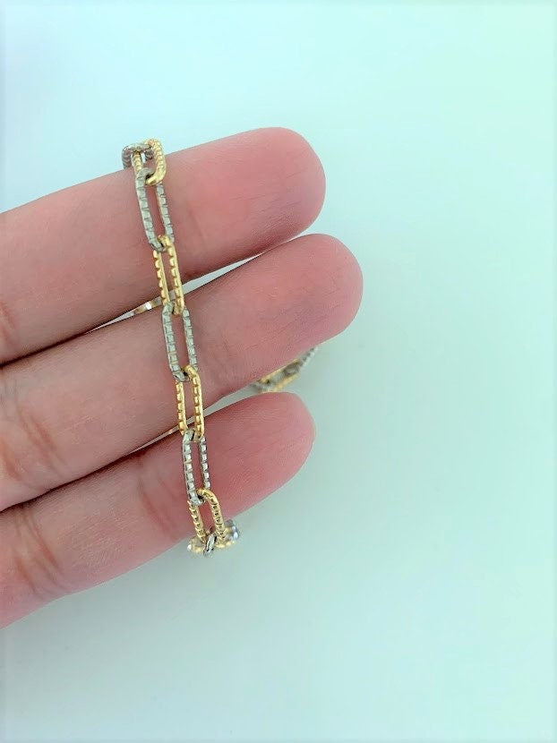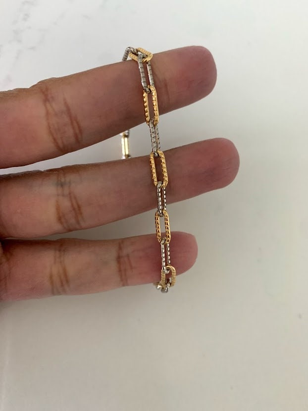 18K Gold Filled Bracelet Trio, Two Tone Paperclip Bracelet, Herringbone Bracelet, Beaded Bracelet, Statement Bracelet, Arm Party
