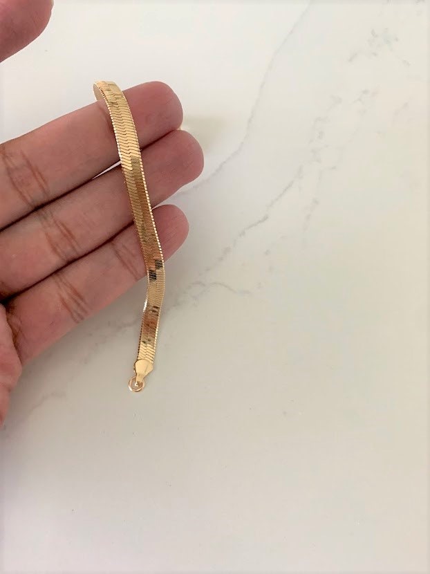 18K Gold Filled Large 6MM Herringbone Bracelet:
