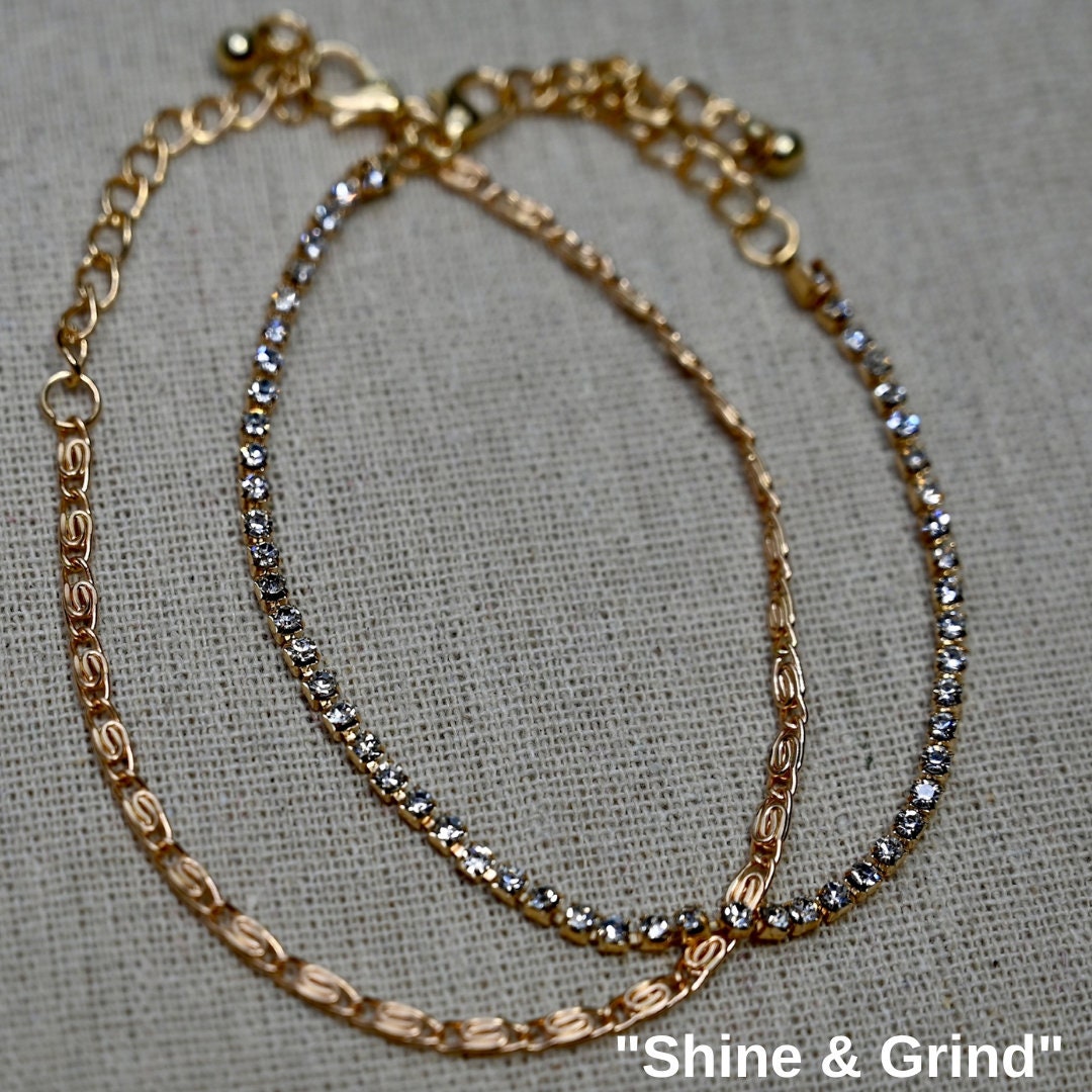 The “Shine & Grind” Duo features a tennis bracelet and Grecian link style.