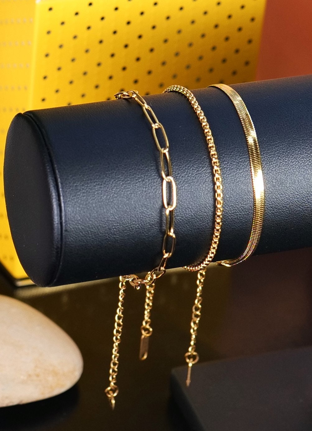 Bracelet for women , 14k ,set 3pc bracelets 14k Gold Plated , Waterproof, Tarnish-resistant Twisted Chain, Snake Chain, Beaded Bracelet