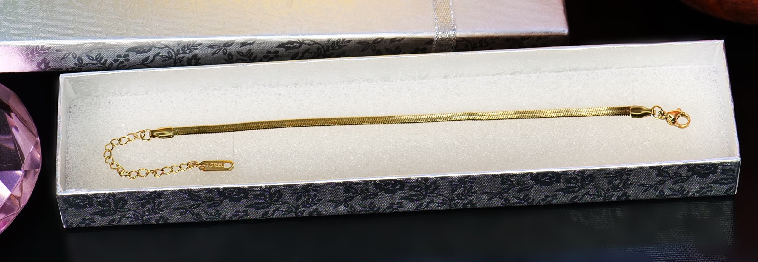 Elevate your outfit with this set of 3 14k gold plated bracelets. The snake and chain design adds a touch of elegance and style, while the adjustable…
