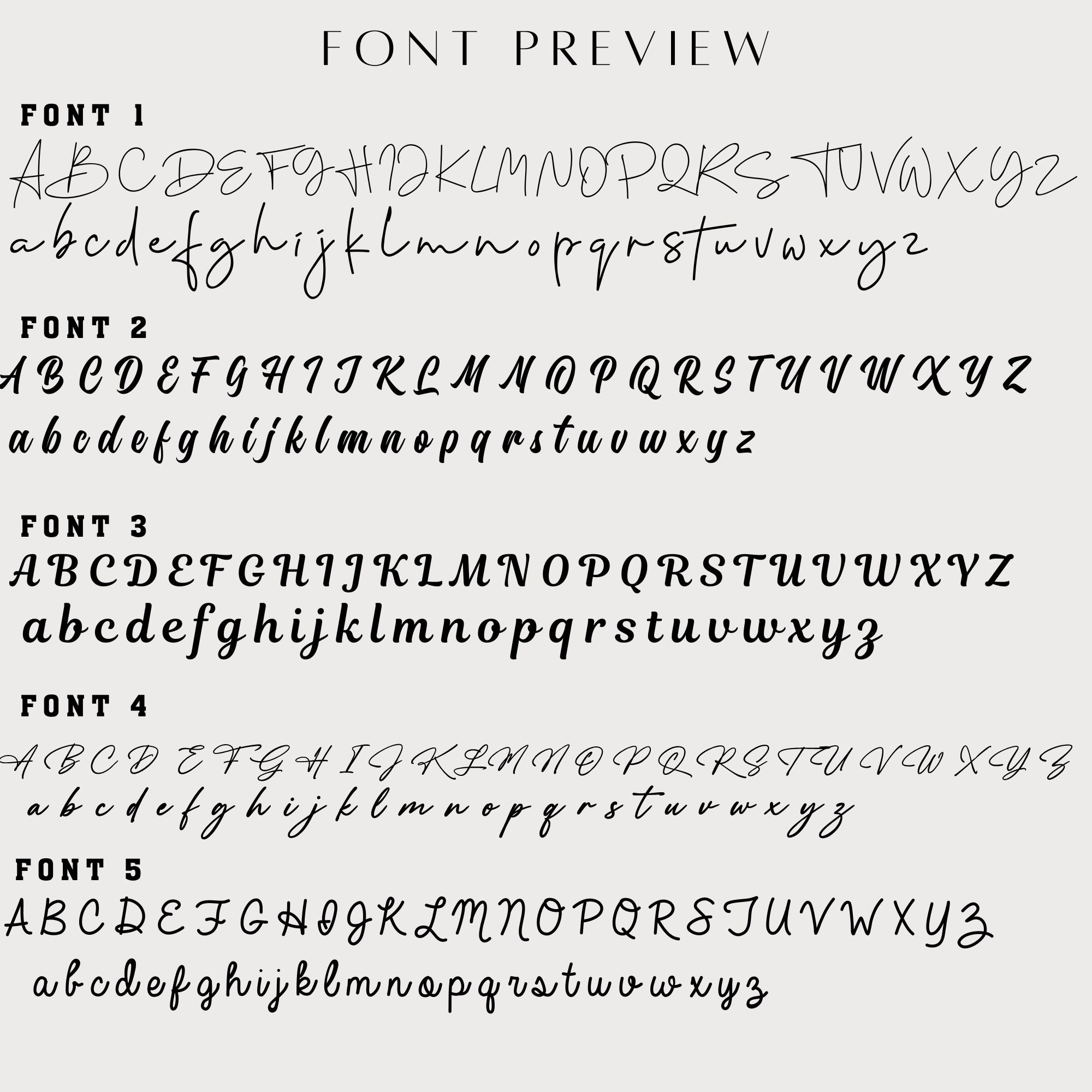 | Font Style | Font 1, Font 2, Font 3, Font 4, Font 5 |