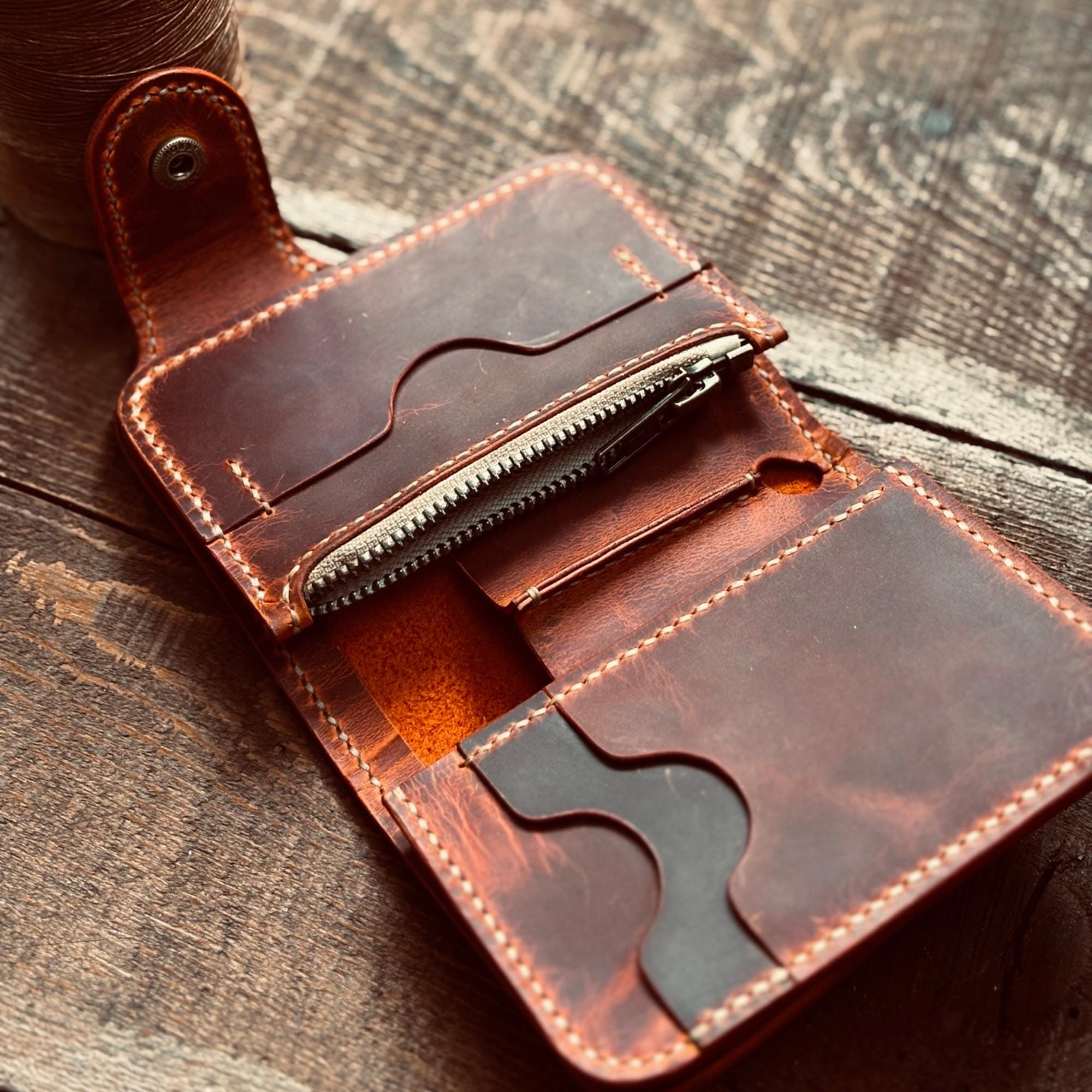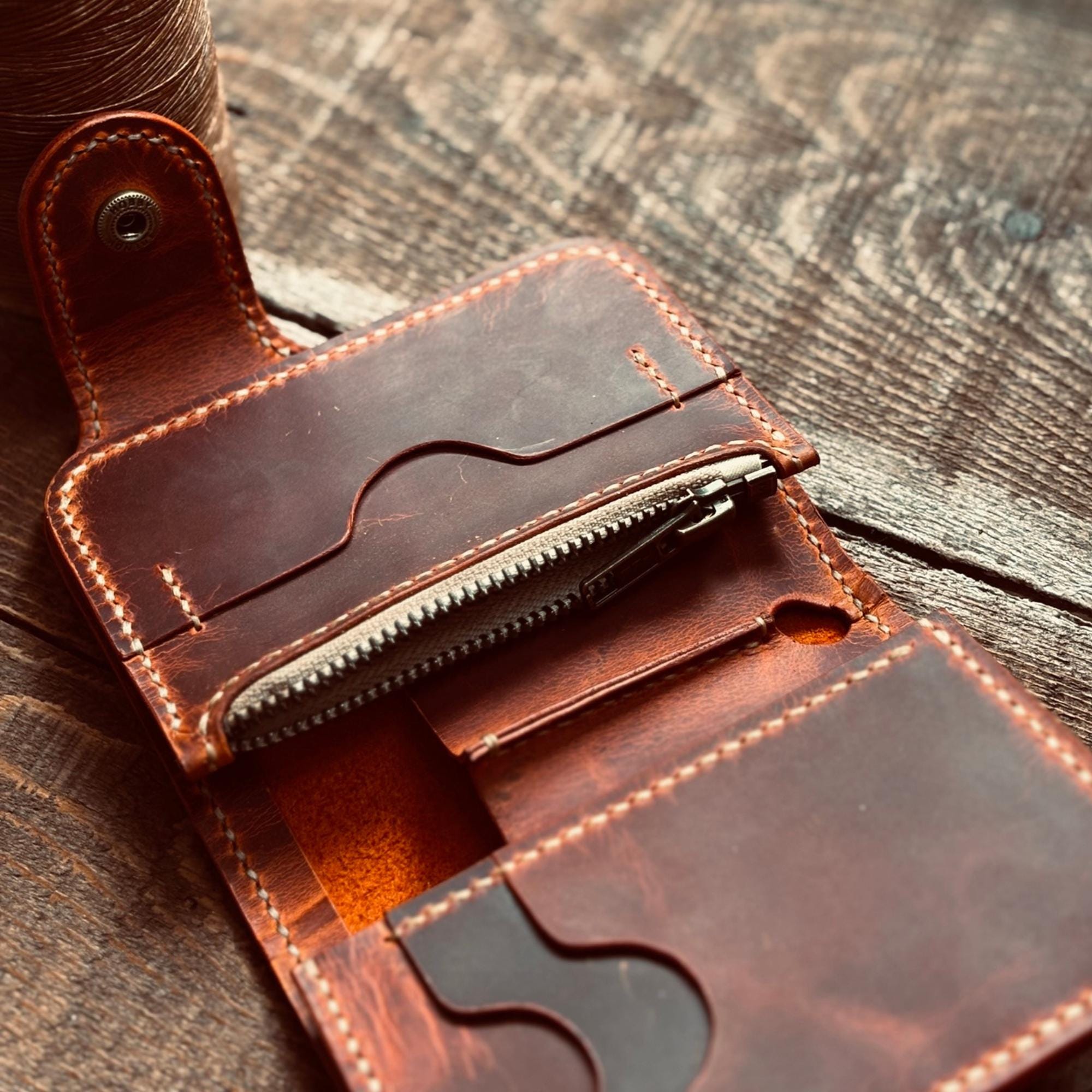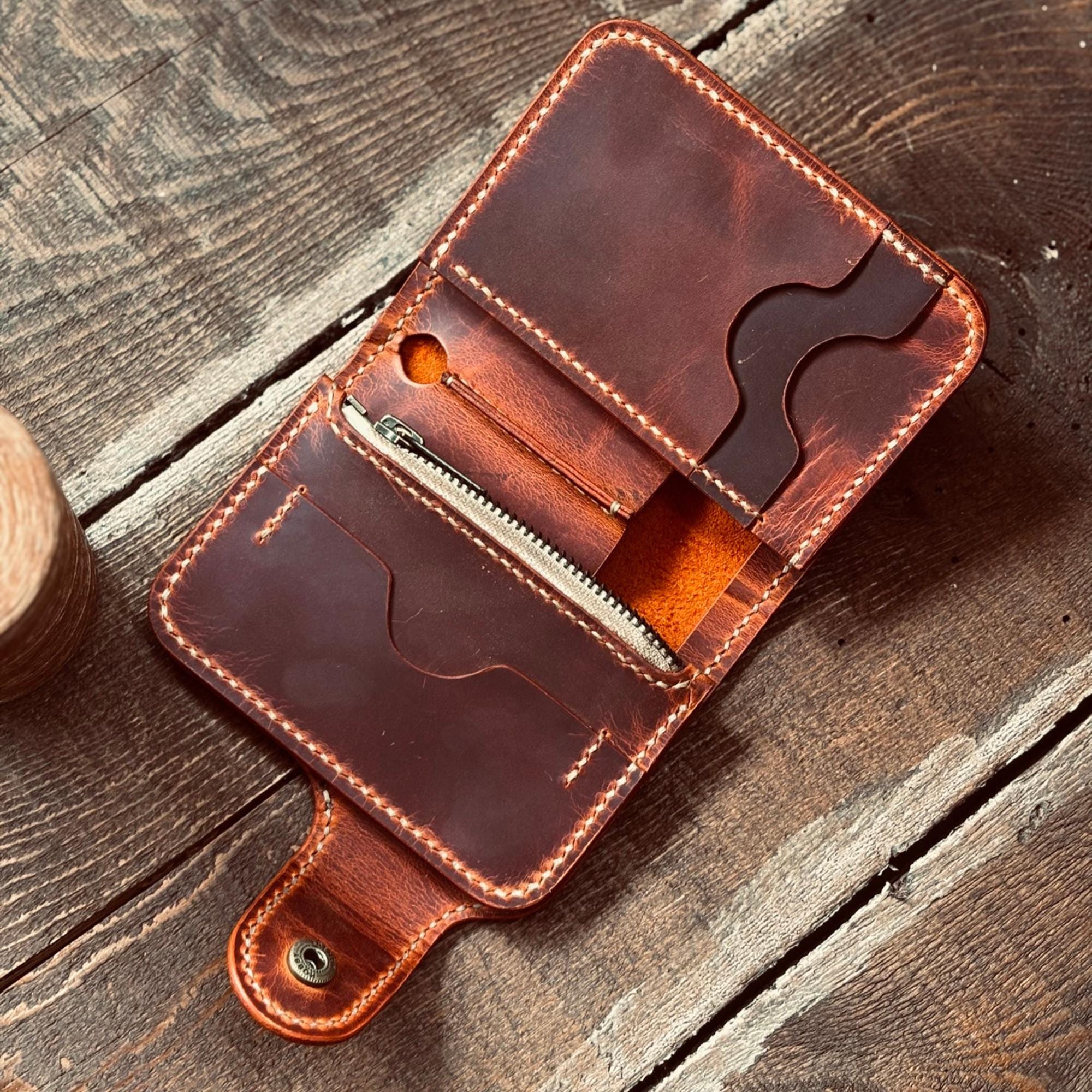 Handmade Full-Grain Leather Wallet: Slim Bifold with Zipper