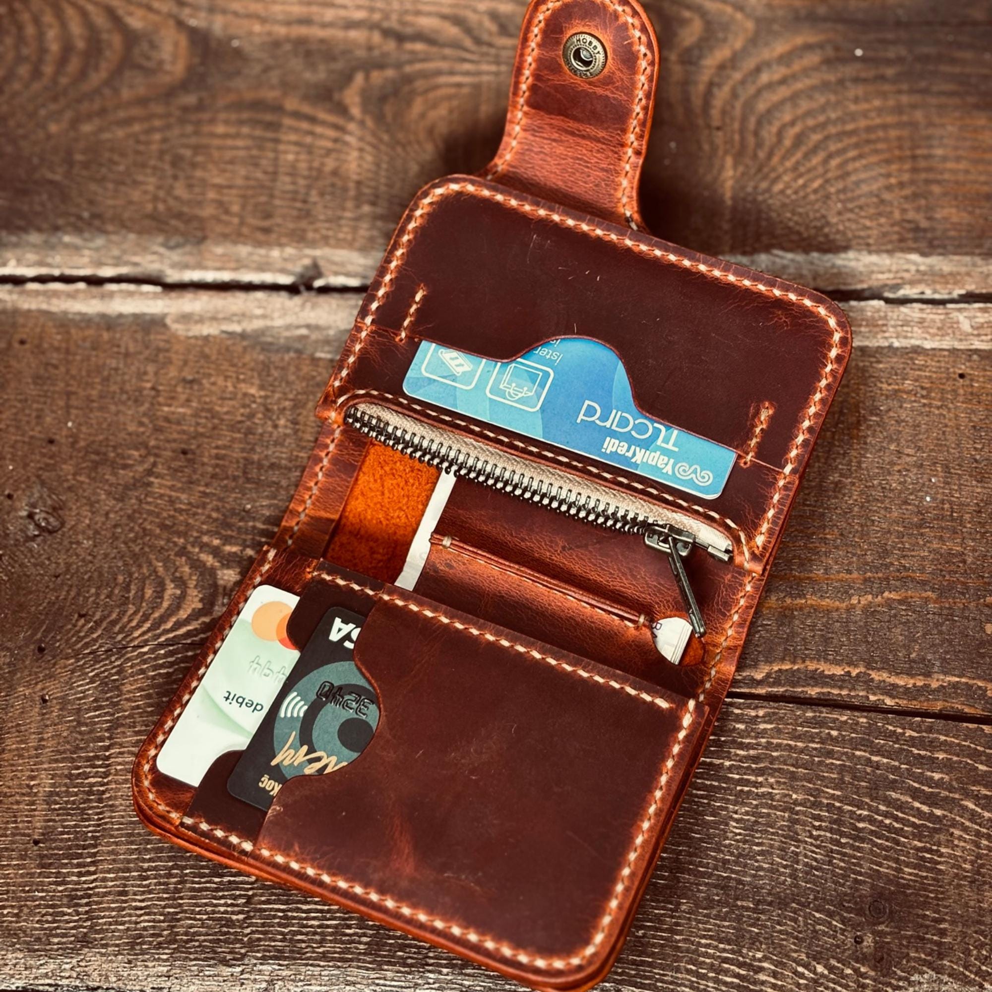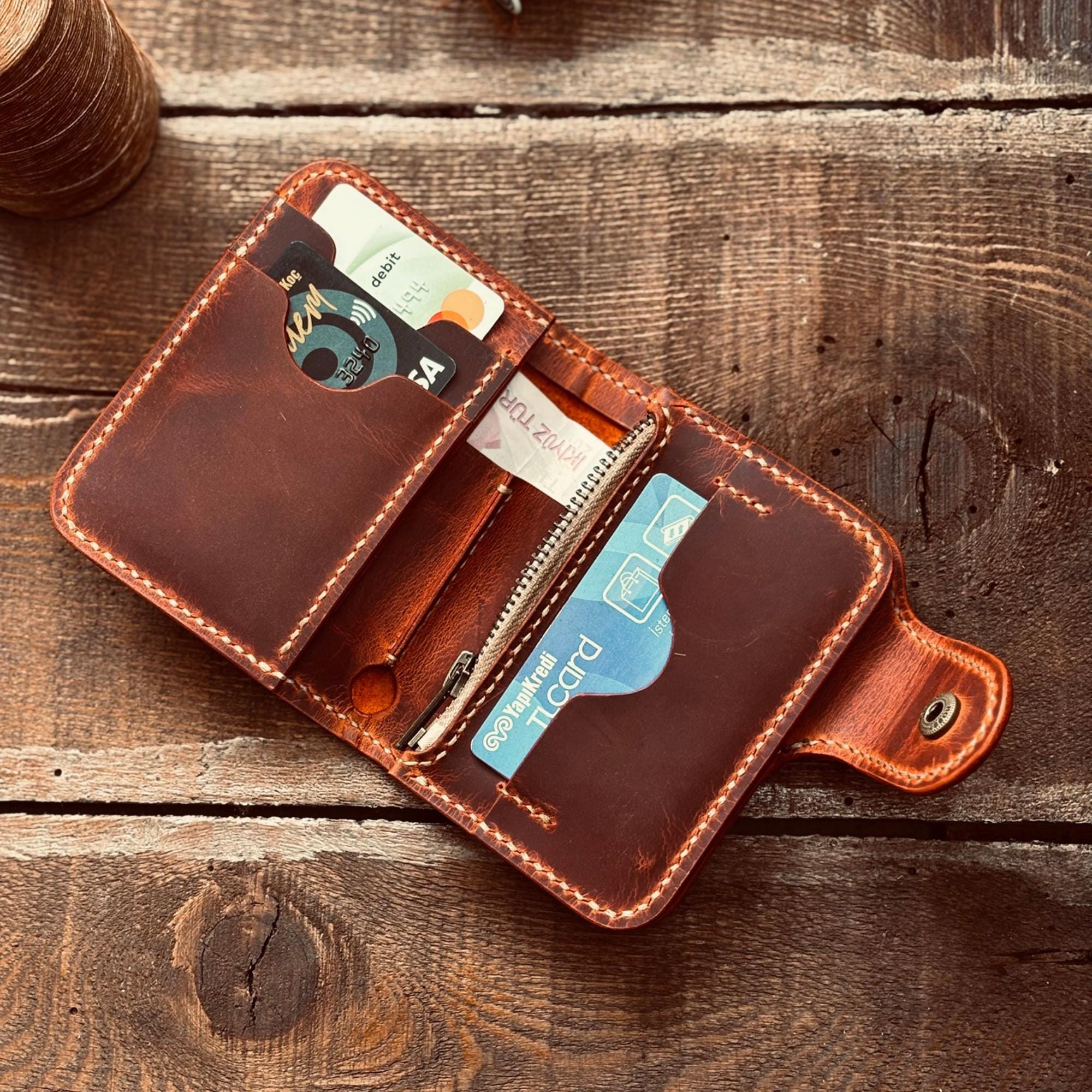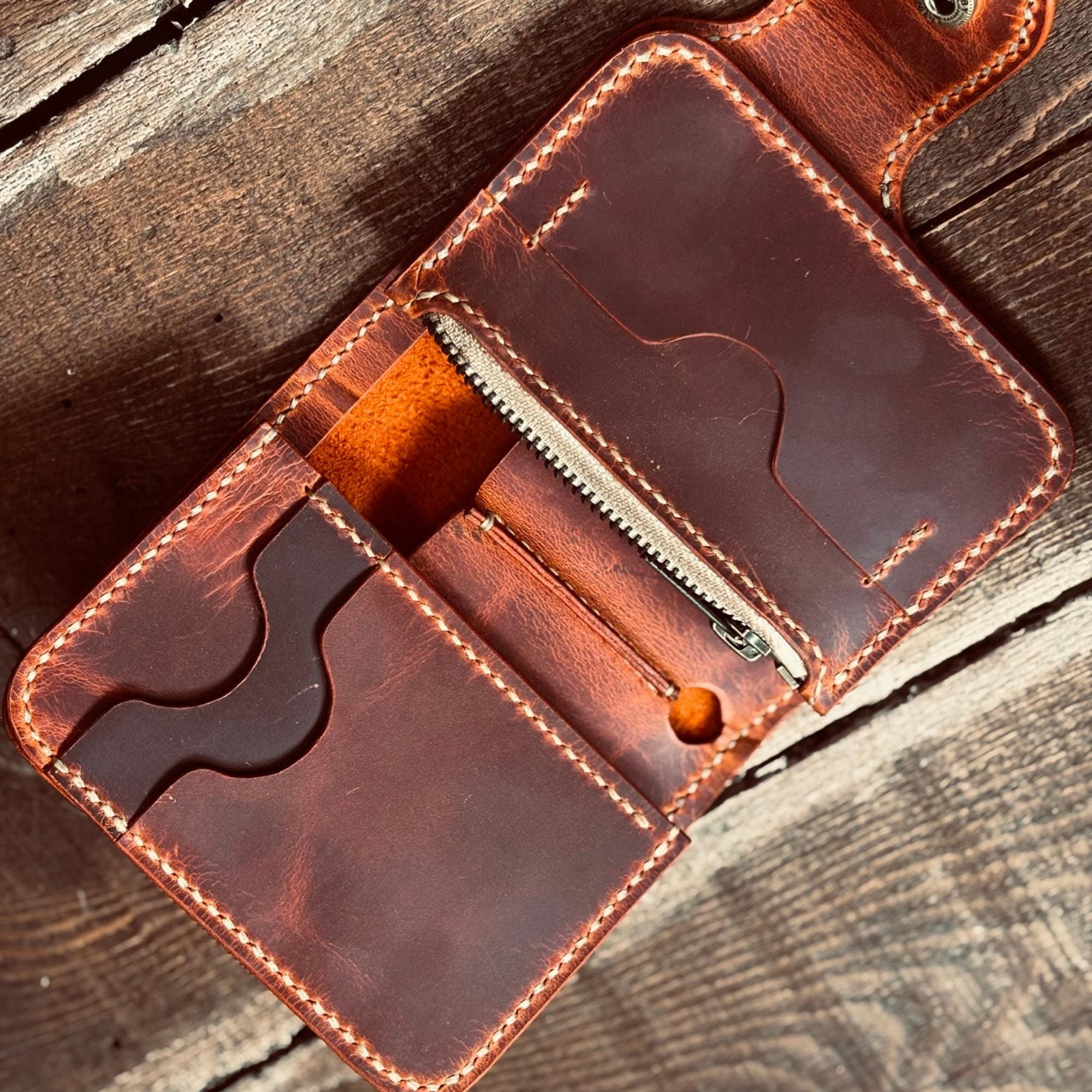 Handmade Full-Grain Leather Wallet: Slim Bifold with Zipper