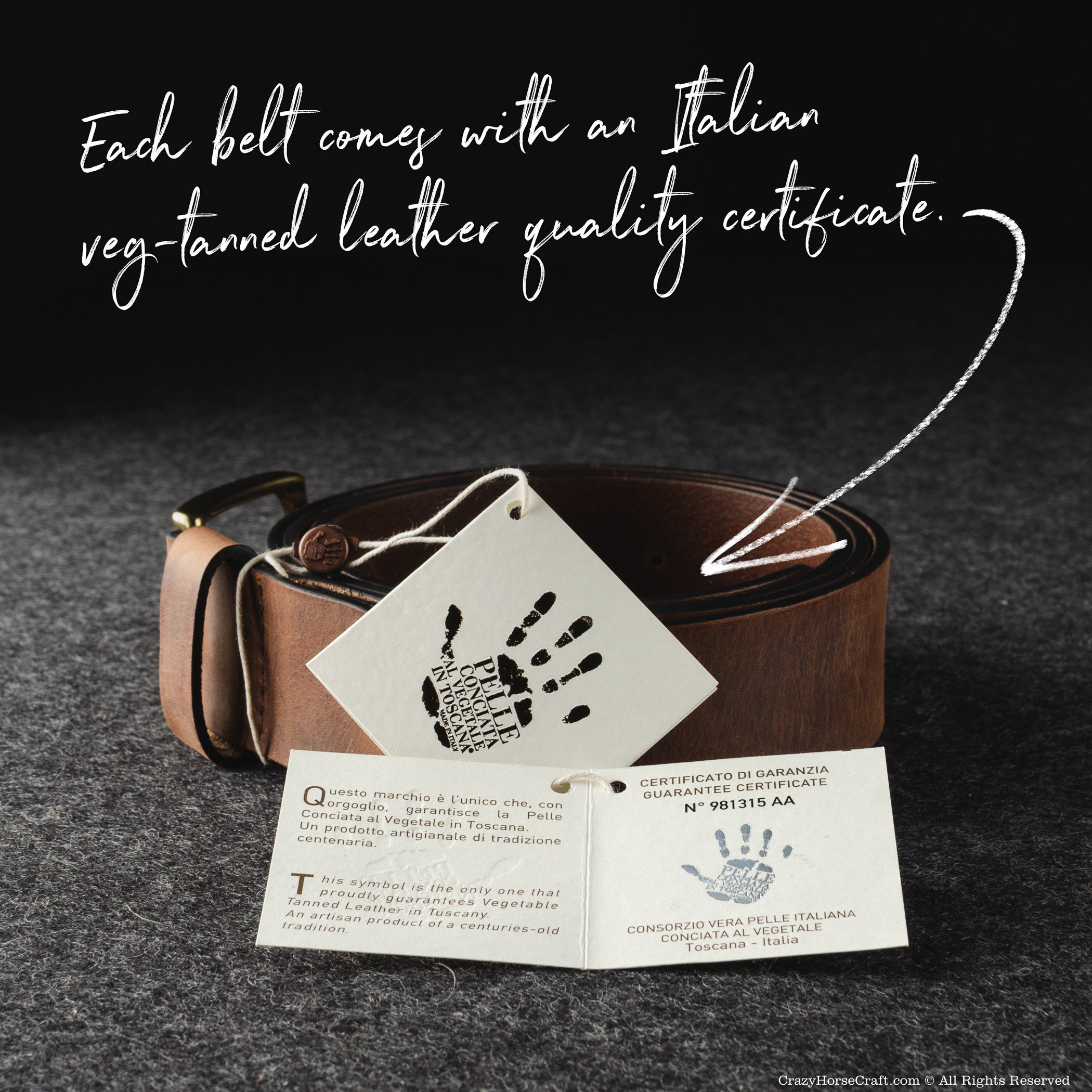 – Each belt comes with an Italian veg-tanned leather quality certificate.