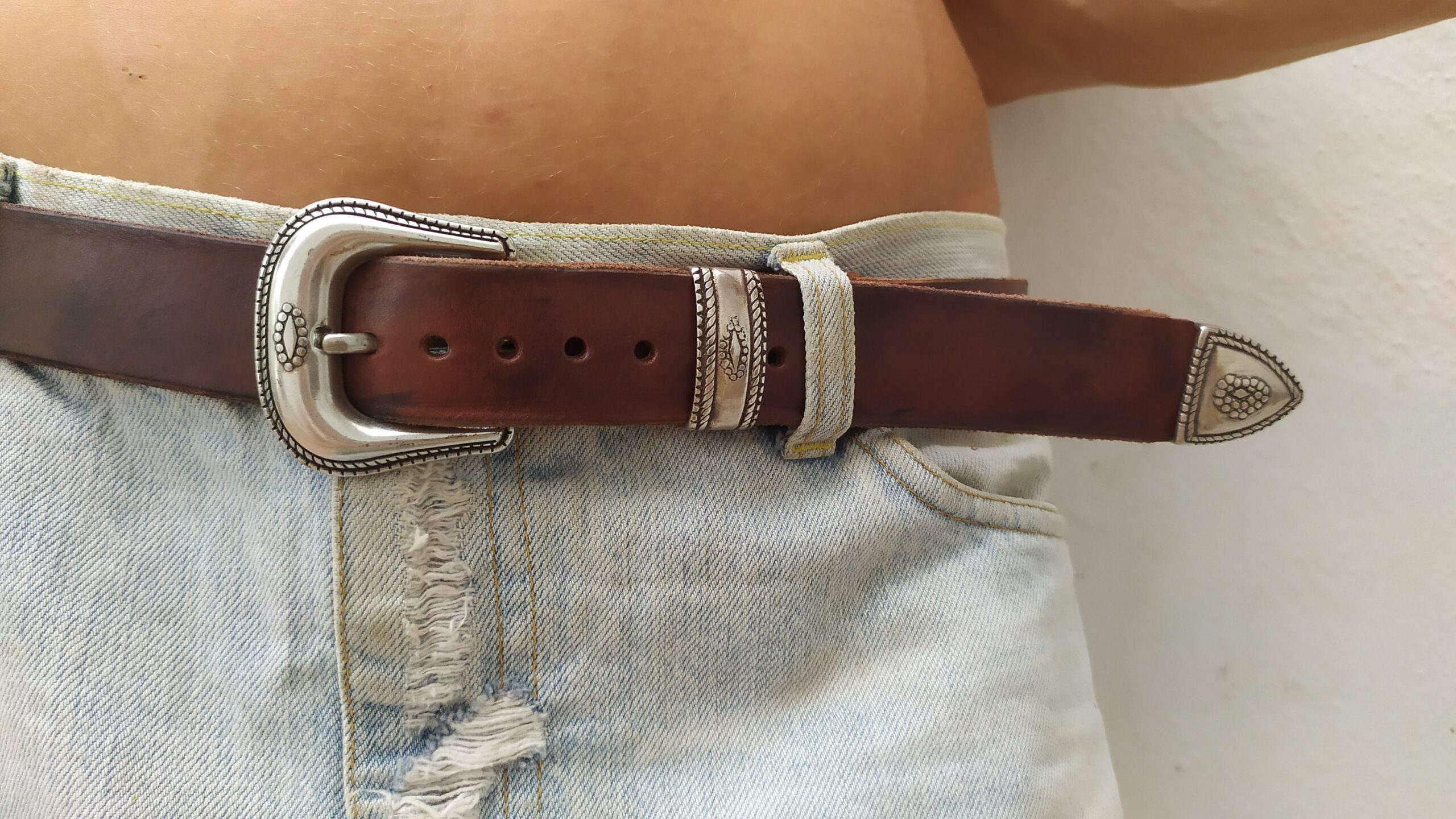 The width of the belt is 3 centimeters. Ideal to wear with jeans or with any type of pants.