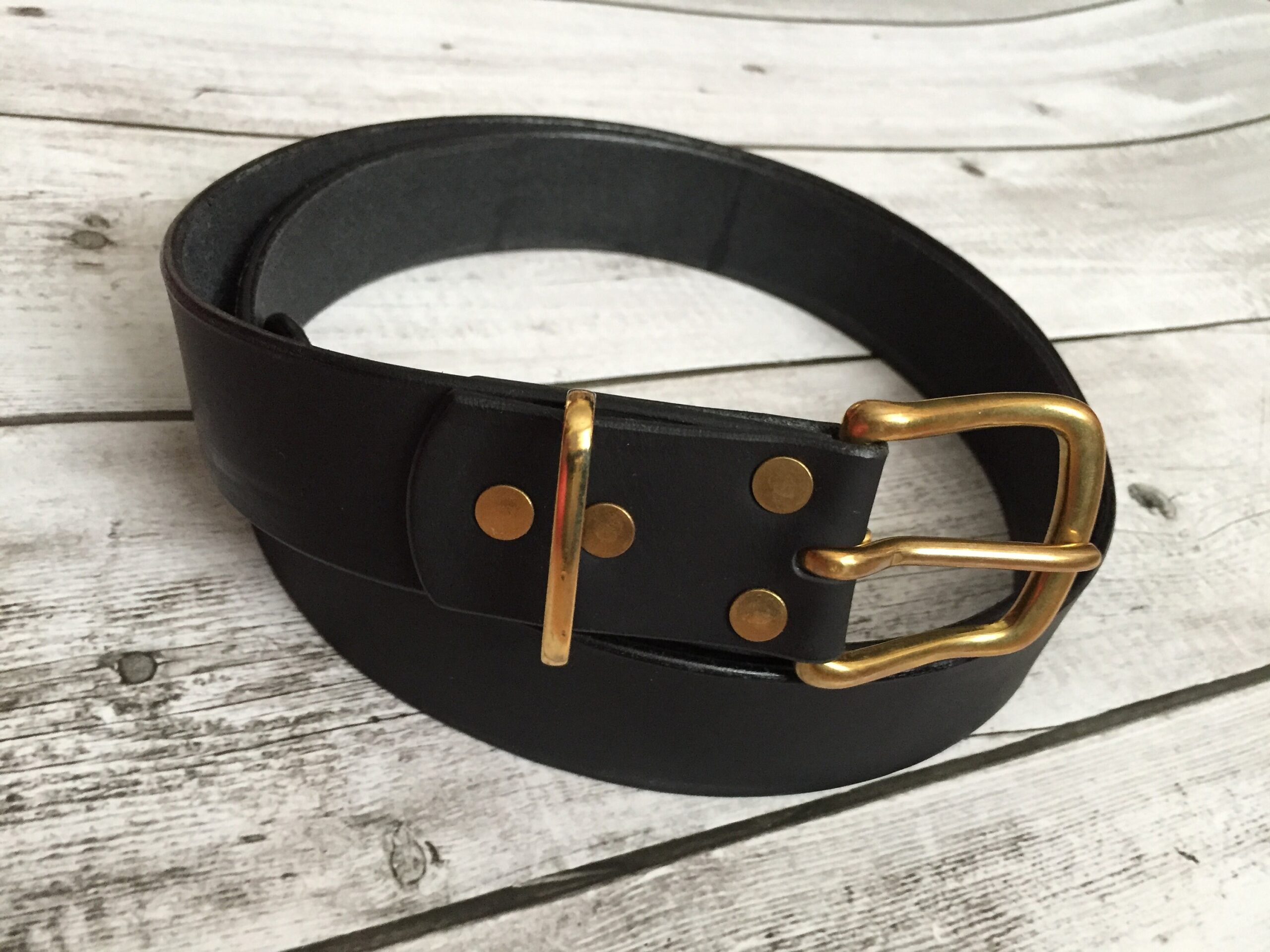 Available in vintage brown or modern black made from the rear cut of a hide – The thickest and strongest part of it. This minimizes stretch and allows the belt to maintain its shape through its years. The belt keeper can either be metal or leather.
