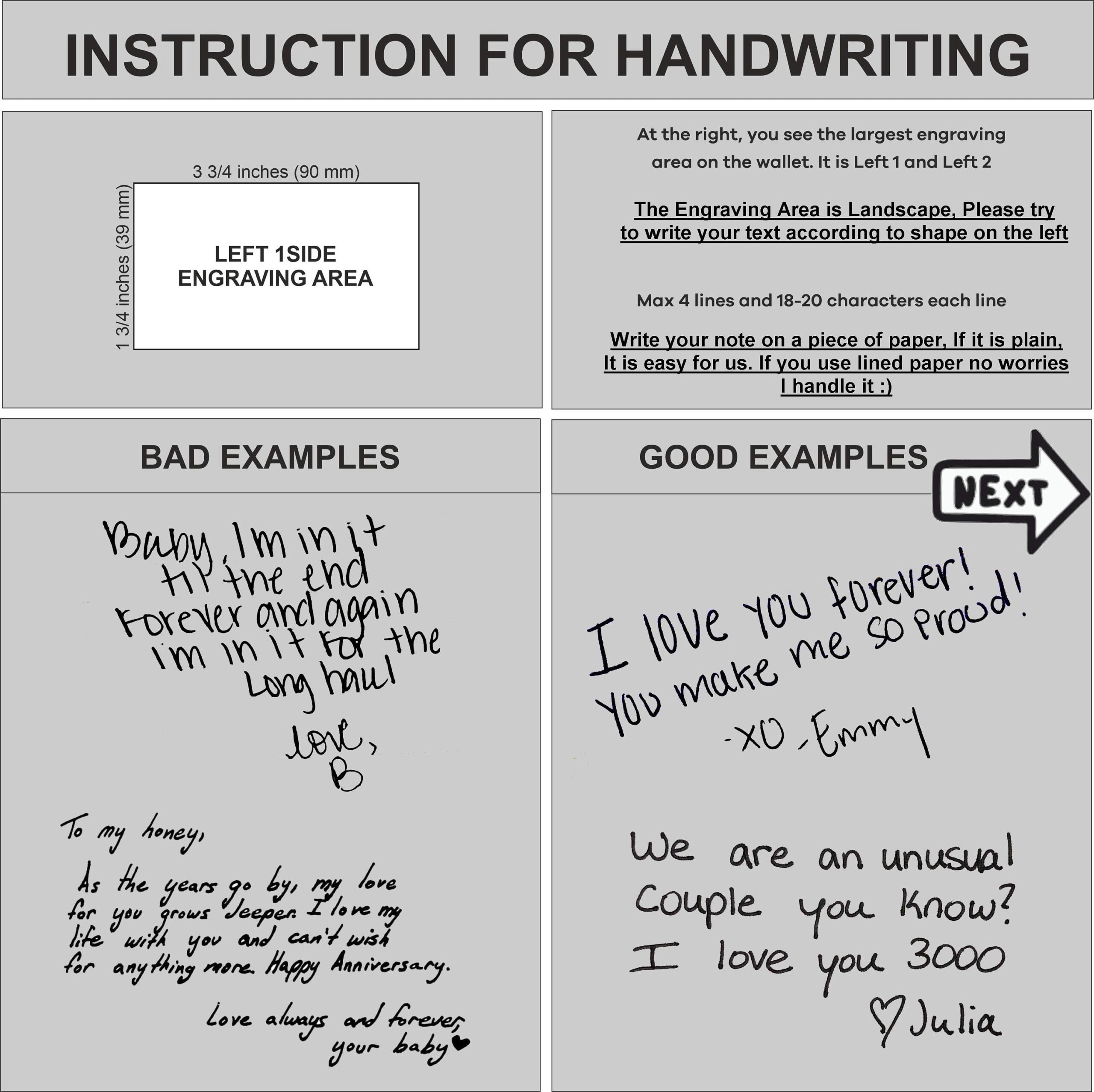 Upload or send a clear photo of your handwritten message, signature, or design after placing your order.