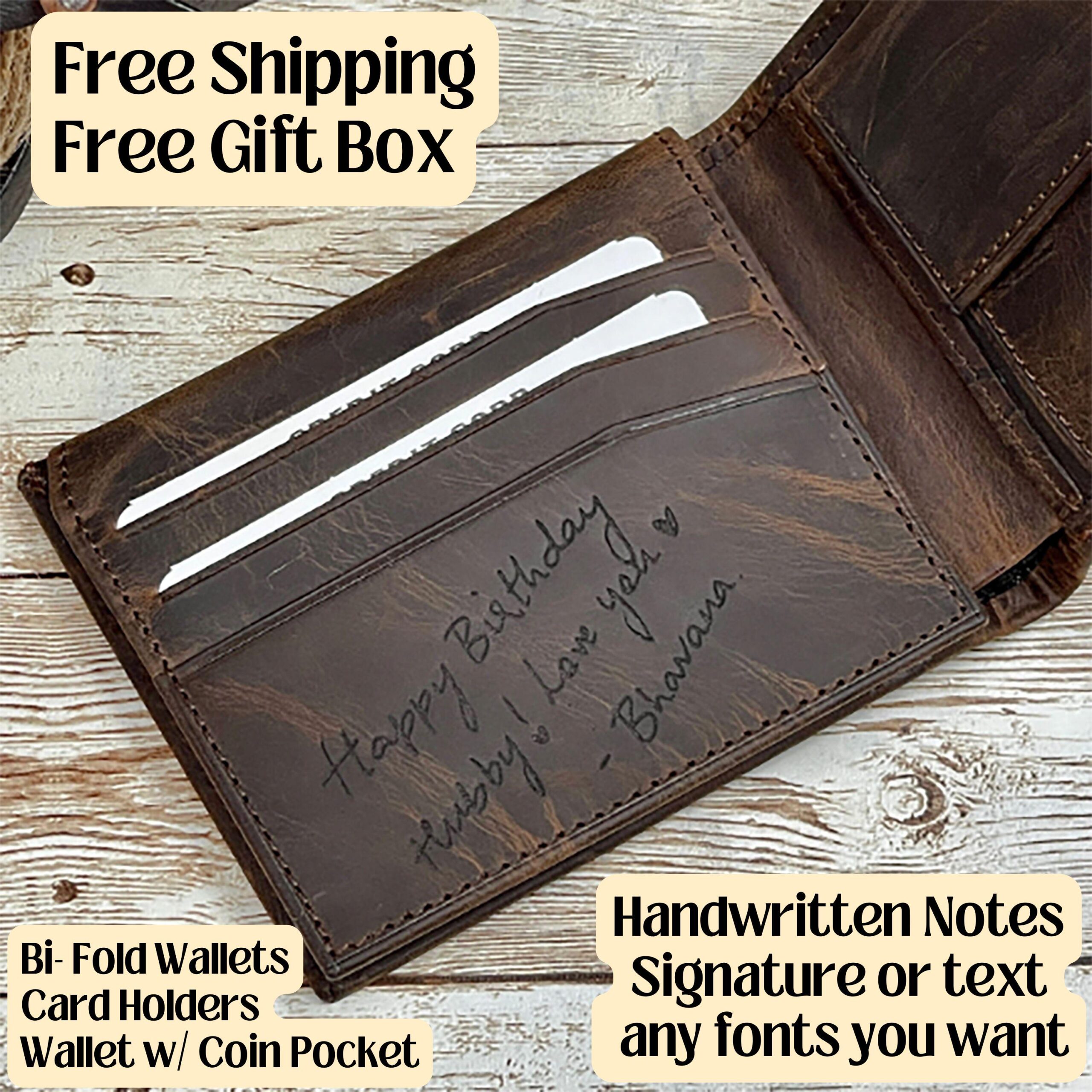 Crafted from high-quality genuine leather, this custom wallet features a sleek bifold design and offers both durability and elegance. What makes it truly special is the option to engrave a personal message in your own handwriting — a heartfelt note, initials, a name, or a special date — turning a functional item into a cherished memory.