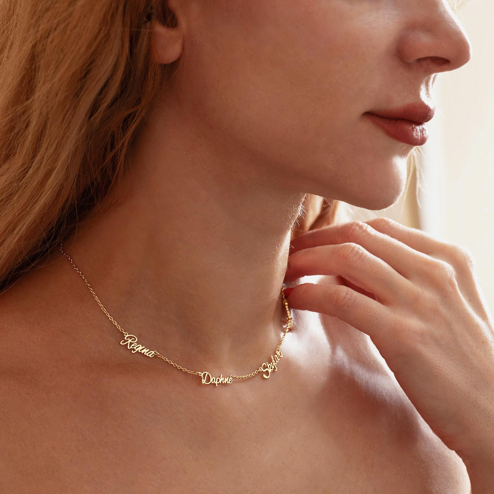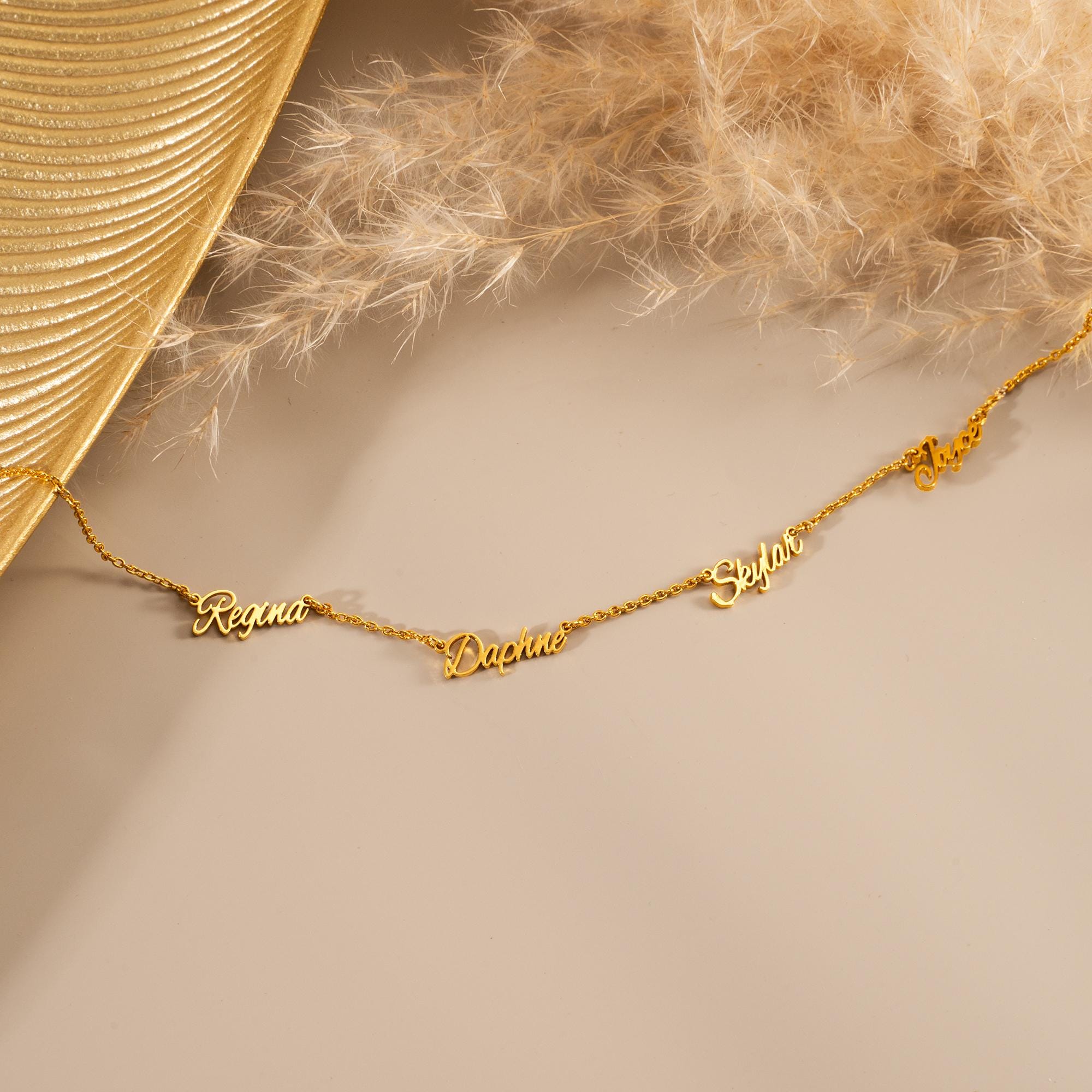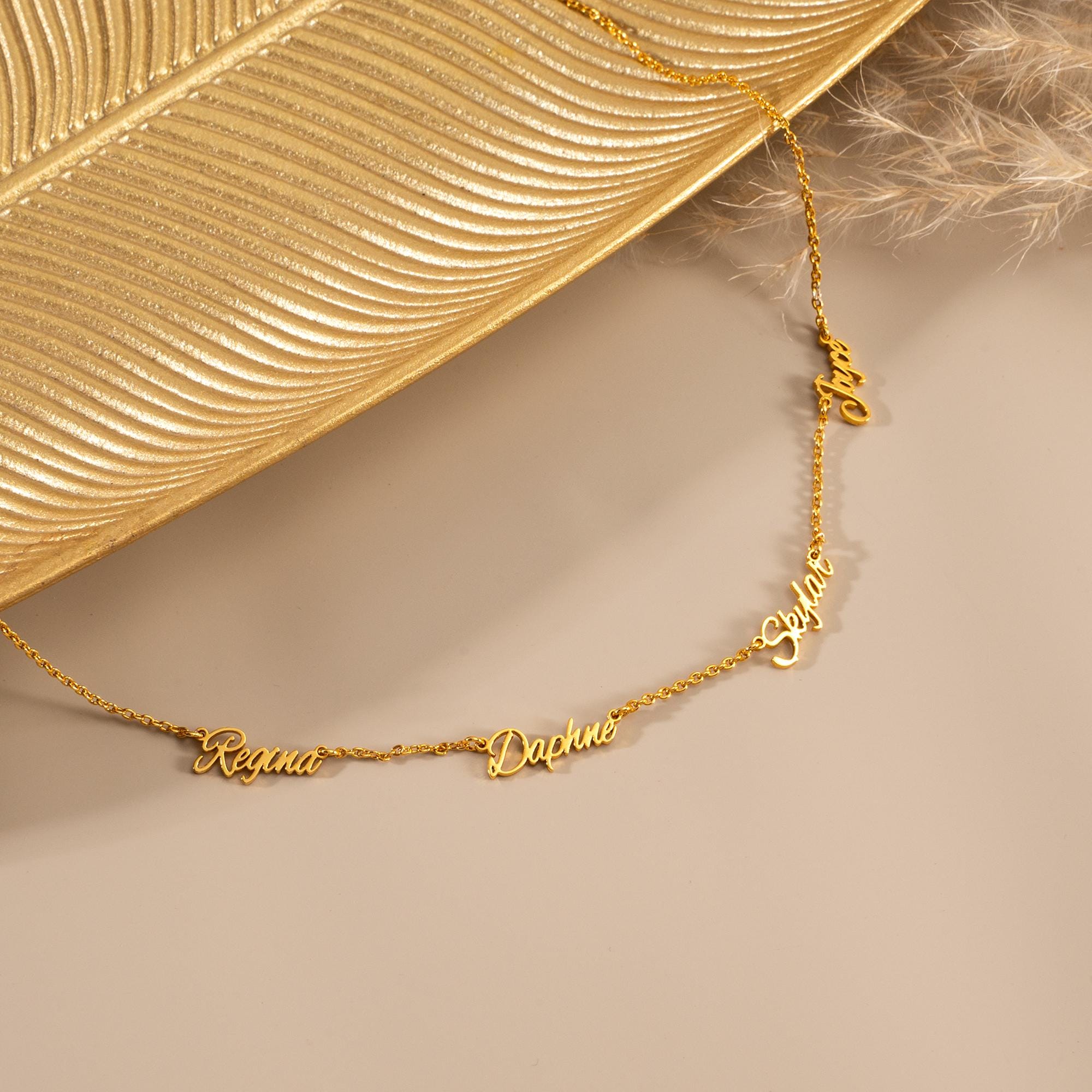 Celebrate the people who mean the most to you with this elegant Multi-Name Necklace. Customize it with 1 to 5 names, making it a truly unique and personal piece of jewelry. Whether it’s the names of your children, family members, or loved ones, this necklace is a meaningful way to keep them close to your heart. Perfect for gifting on birthdays, Mother’s Day, anniversaries, or any special occasion.