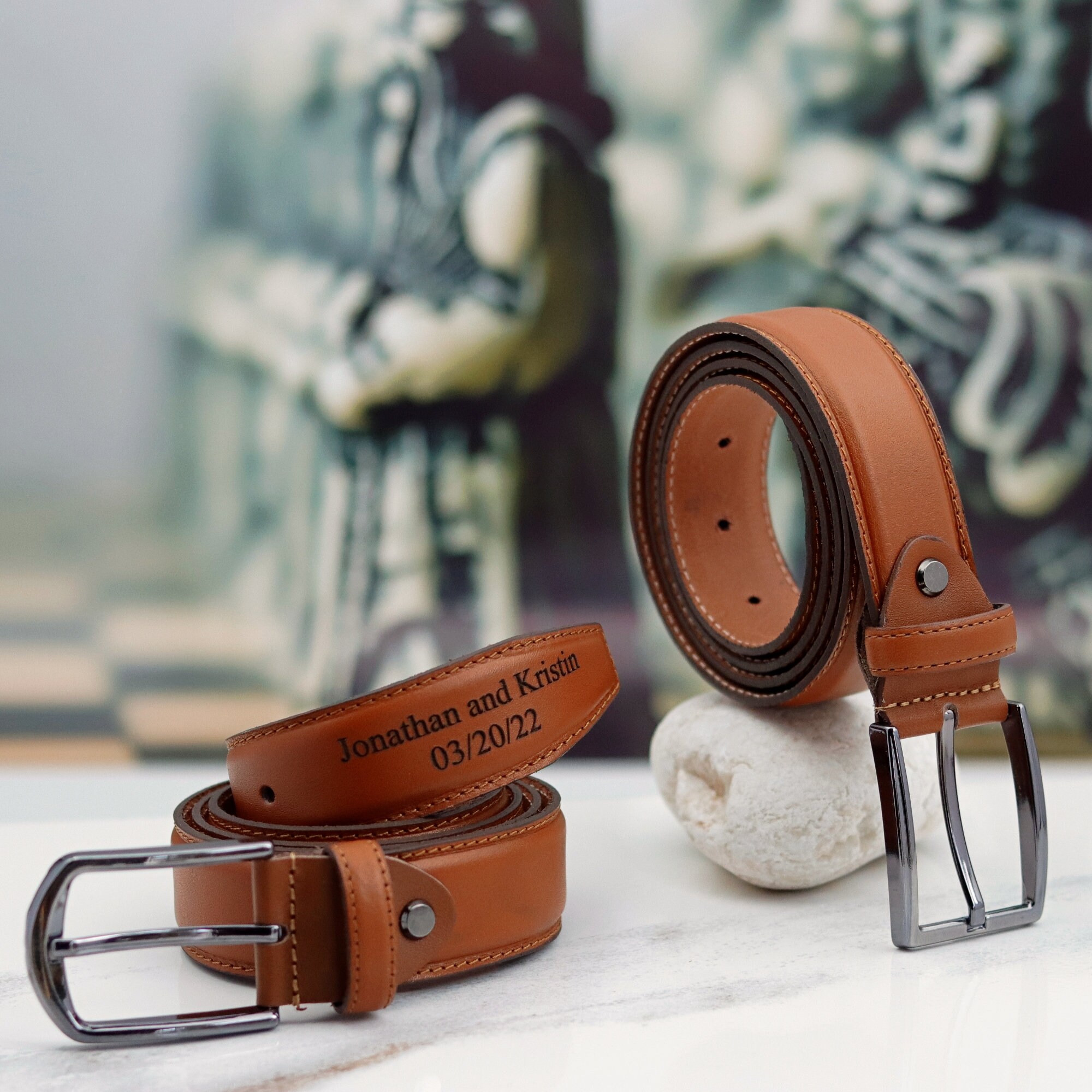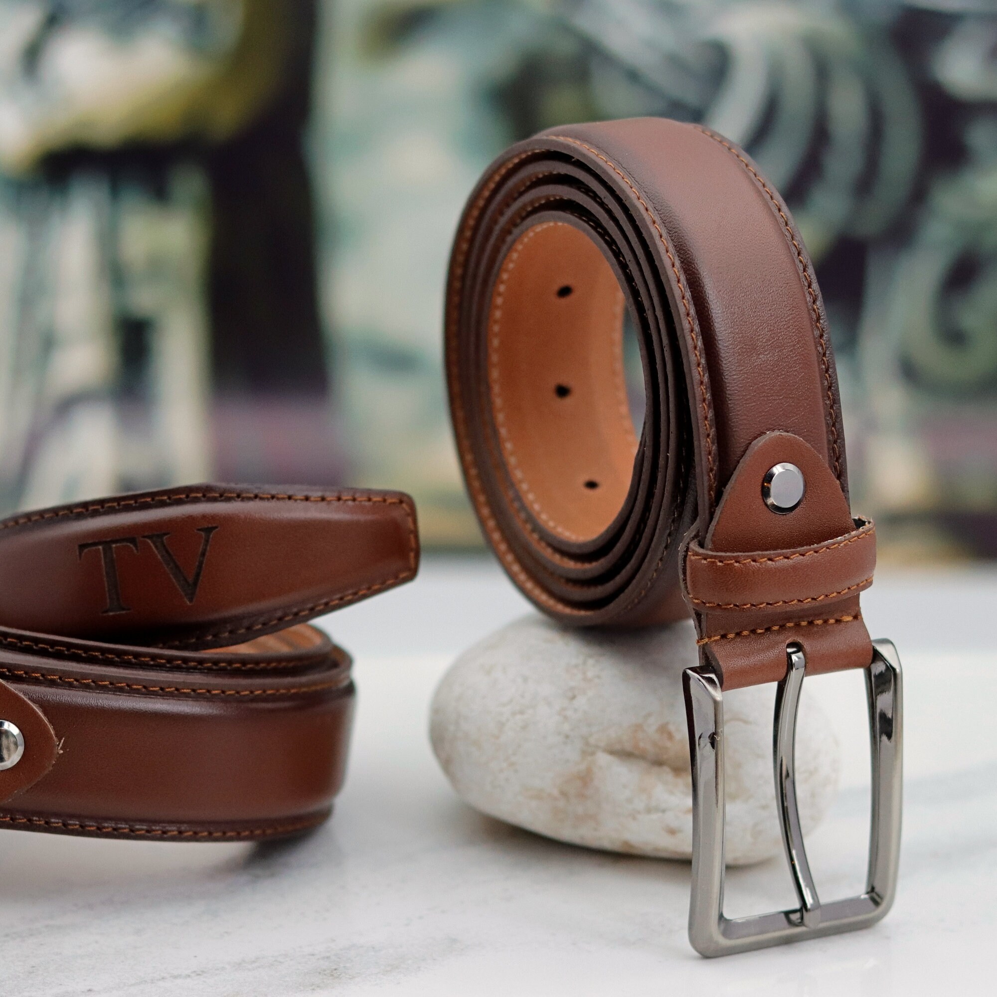 Personalized Brown Genuine Leather Belt – Handcrafted Engraved Belt