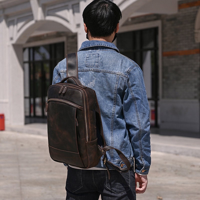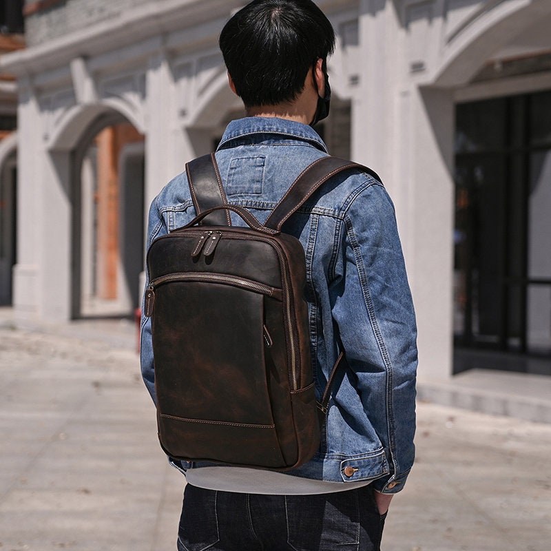 Personalized Full Grain Leather Backpack, Men Leather Travel Backpack, Laptop Backpack, Best Gift for Him, Dad Gift, Father's Day Gift