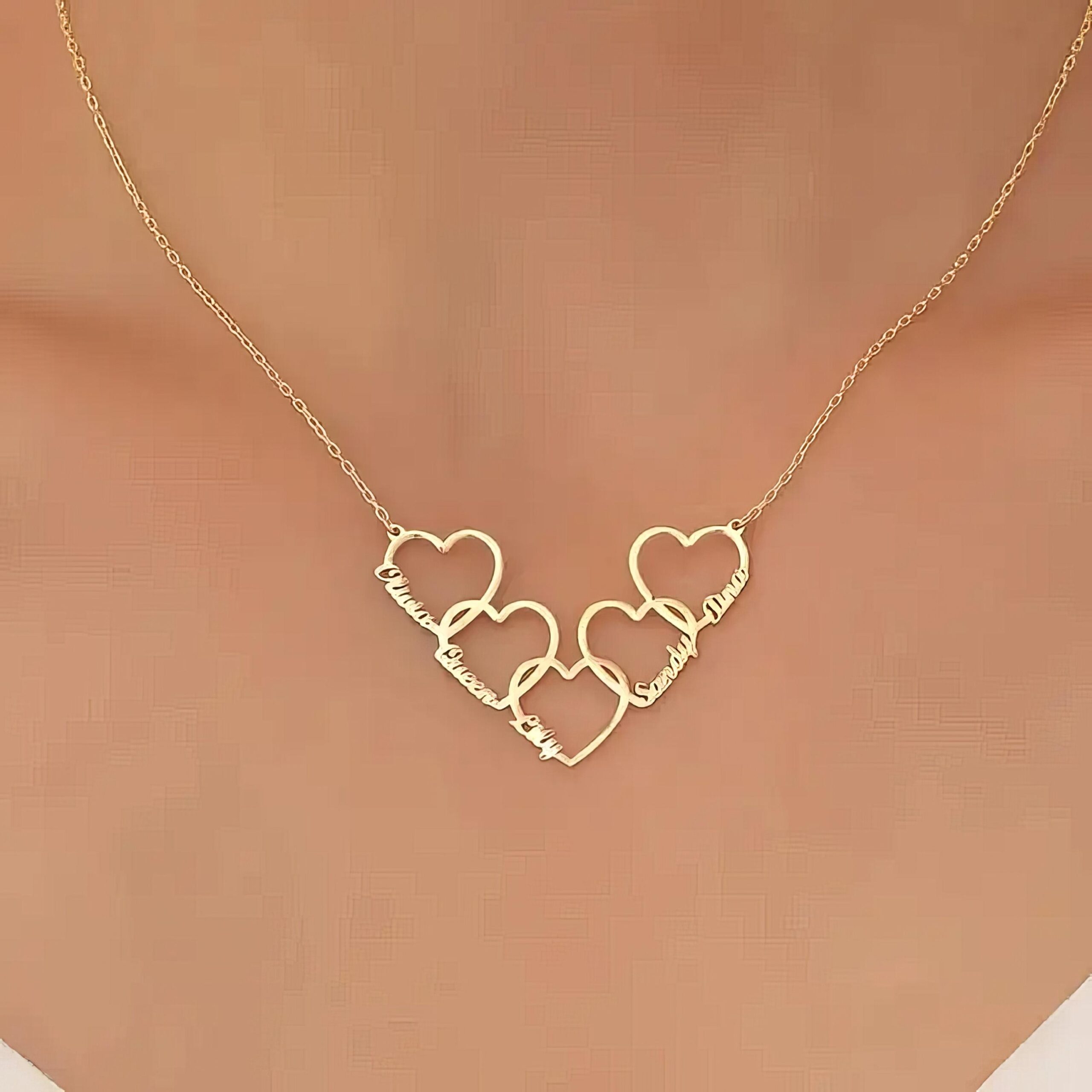 Personalized Heart Necklace,Gold Name Necklace,Multiple Name Necklace,Dainty Couple Necklace,Family Name Necklace,Gift for Her,Birthday Gift