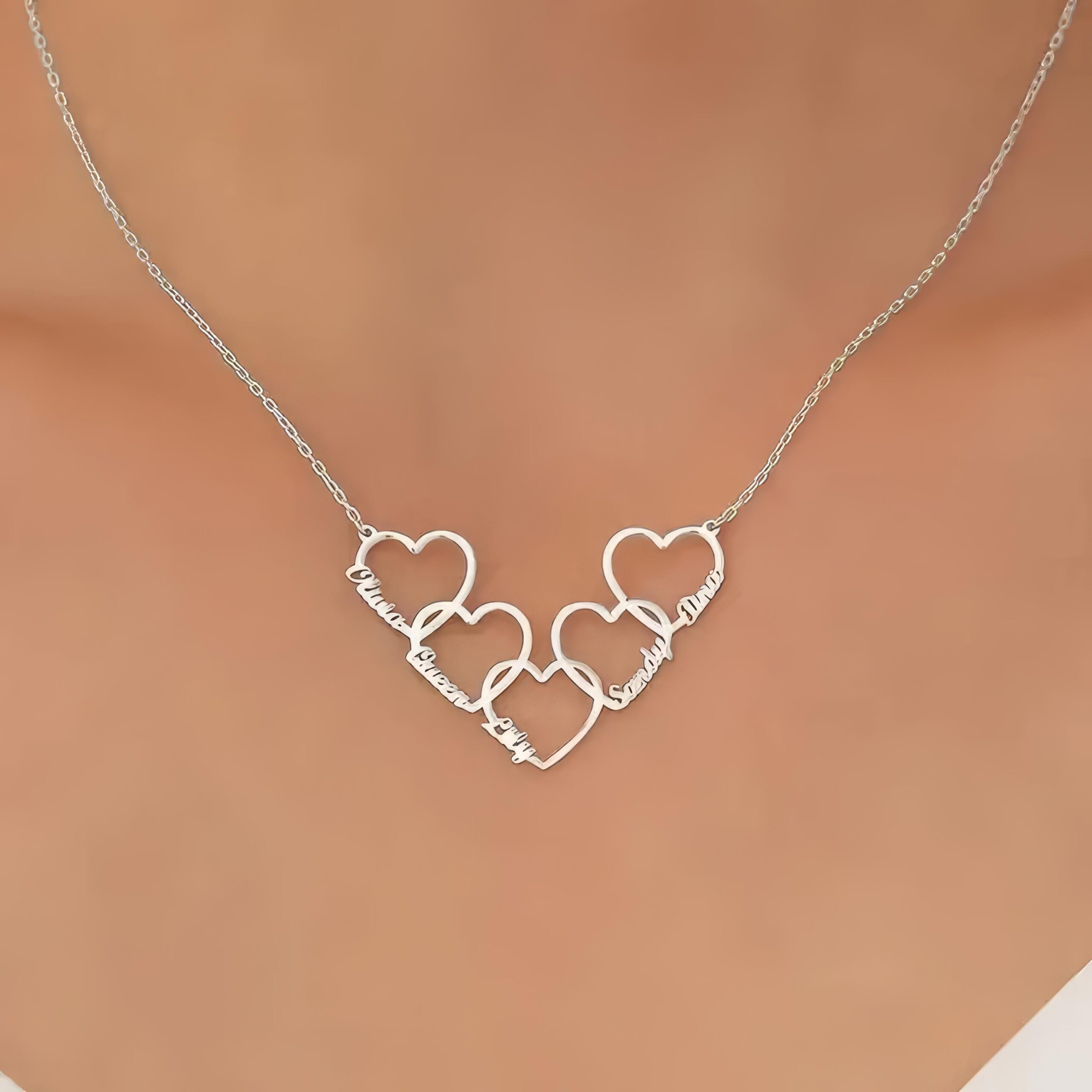 Family Name Necklace with Heart, Multiple Heart Necklace, Kids Name Necklace for Mom, Personalized Necklace, Christmas Gift, Gift for Wife