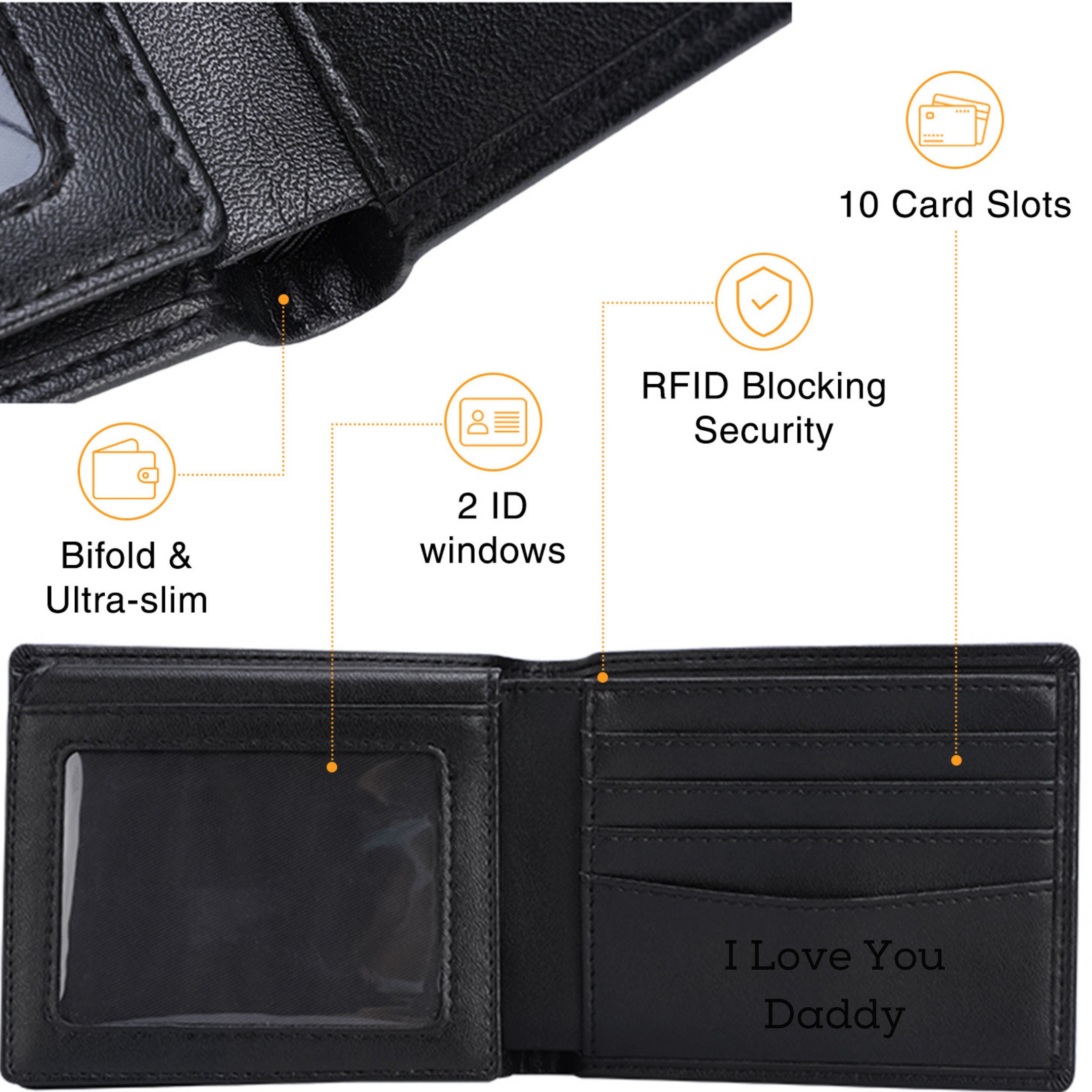 Personalized Leather RFID Wallet, Engraved Genuine Leather Custom Wallet, Anniversary Gift For Him, Husband, Boyfriend, Men, Father, Dad